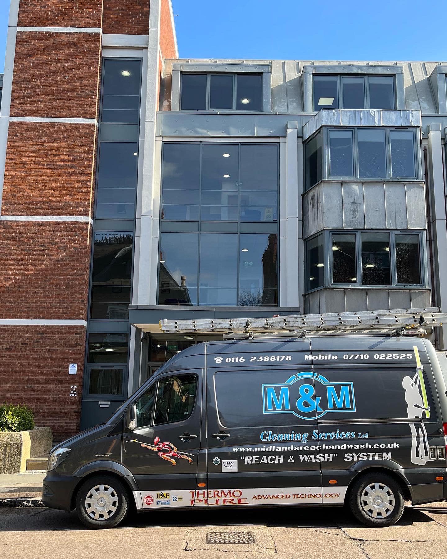 M & M Cleaning Services Ltd is a trusted, fully insured, and accredited commercial window cleaning company, specialising in Reach & Wash Window Cleaning in Leicester. Our experienced team is fully trained, compliant with all health and safety regulations, SafeContractor approved, and IPAF licensed, ensuring a safe and professional service for both our staff and your premises.